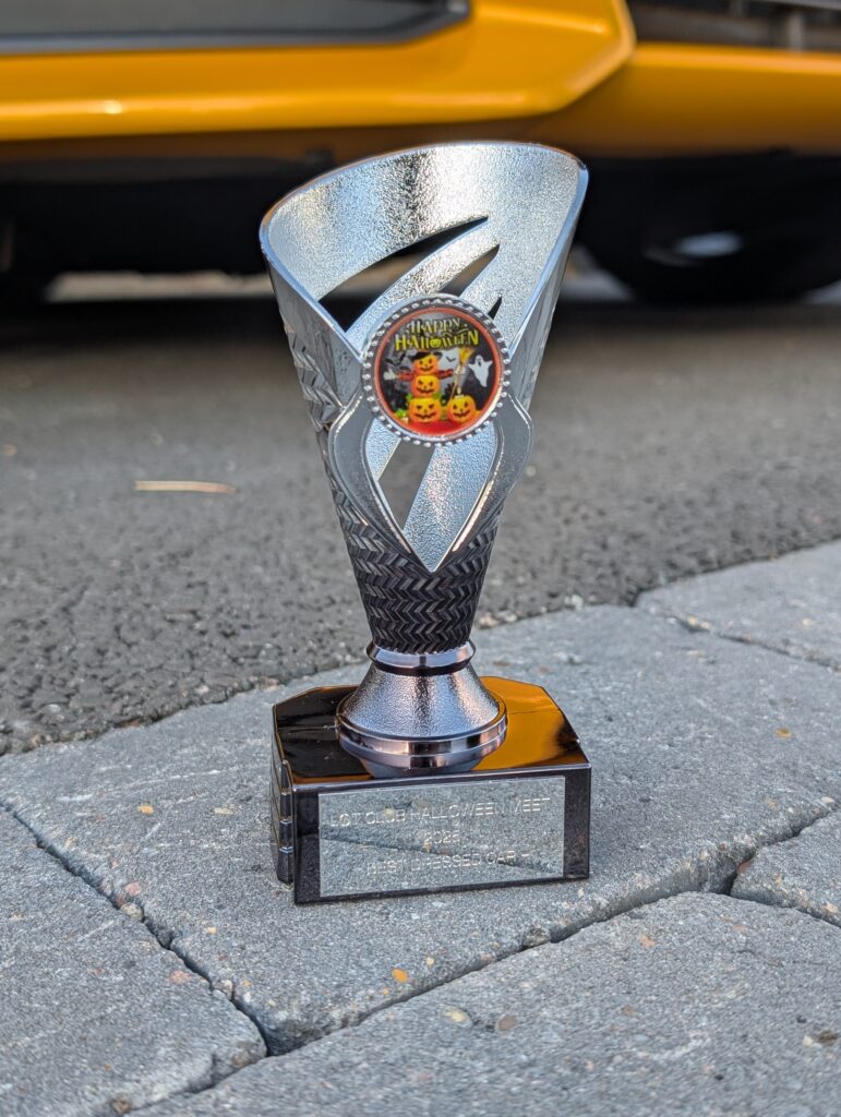 However, this wasn’t any normal car meet. We had an award to hand out for the best dressed car of the evening! This gave the meet attendees a chance to dress up their cars in a spooky theme and our favourite would win a custom engraved trophy.