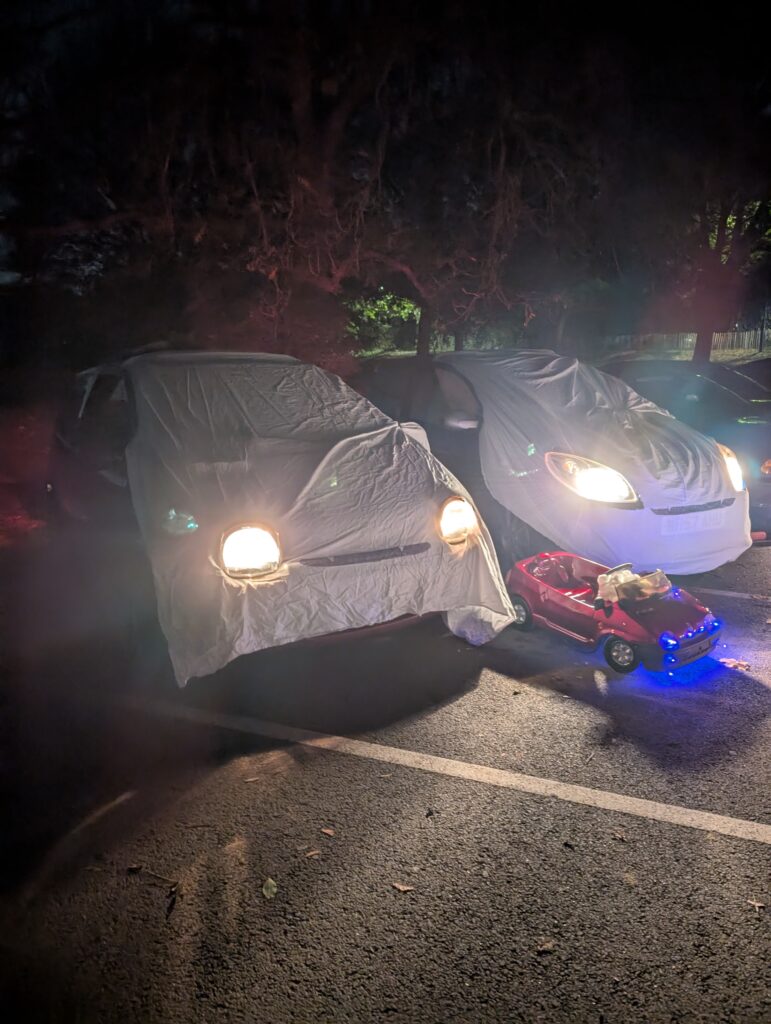 Our 3rd place selection was these two matching Renault Twingos. They came dressed up as ghosts with the headlights perfectly poking through as eyes. They even went to the efforts of dressing up a miniature car with lights